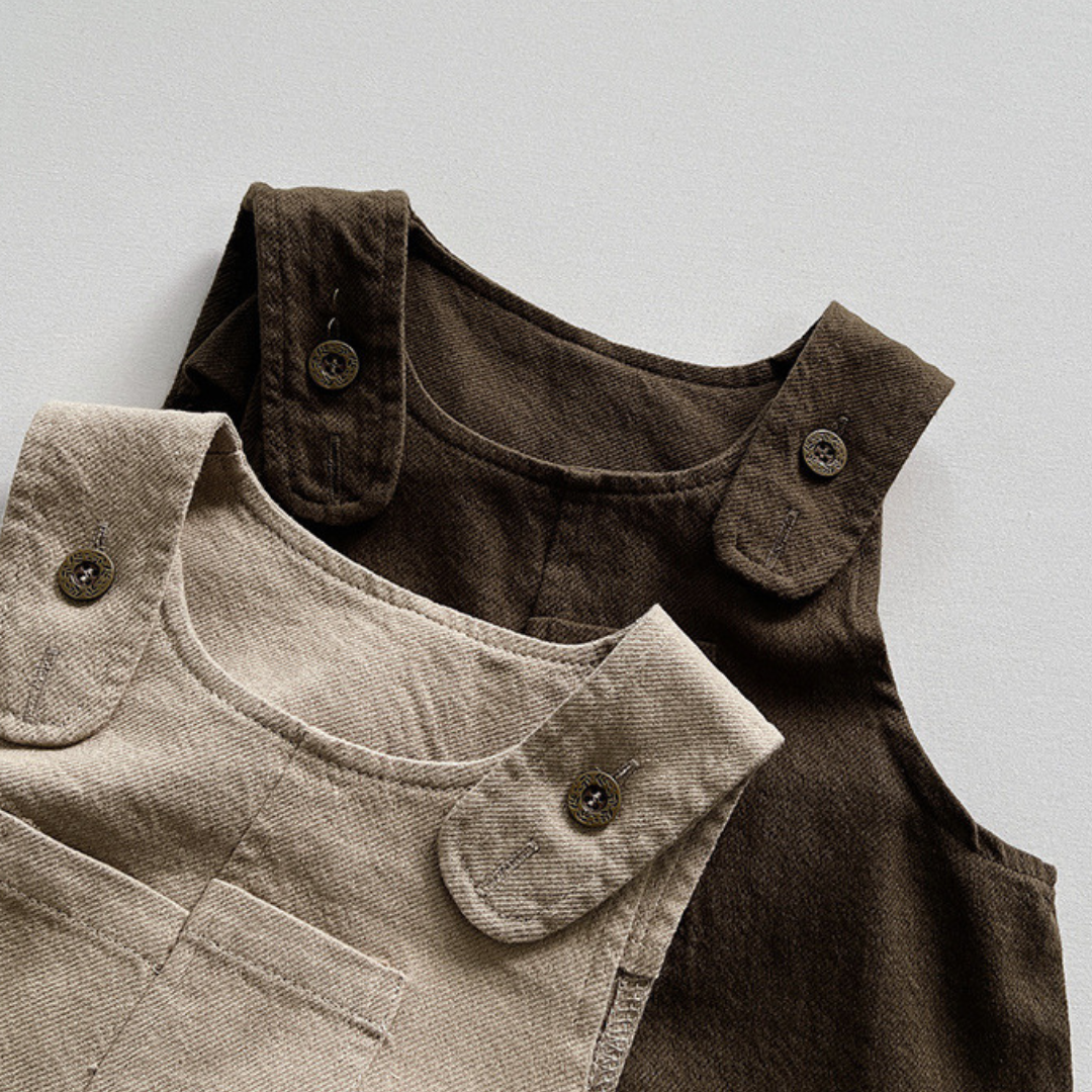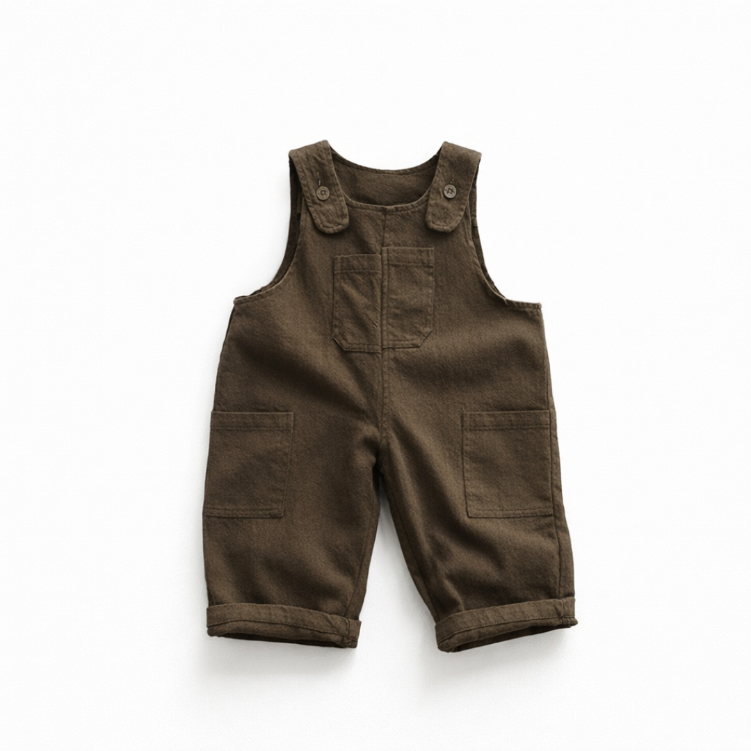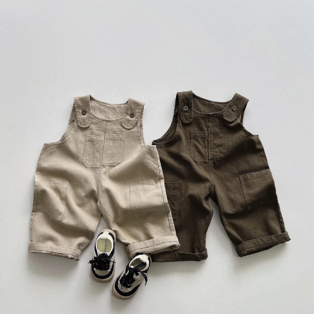 Die verstellbaren Träger mit Knopfverschluss ermöglichen eine flexible Passform und erleichtern das An- und Ausziehen. Der lockere Schnitt macht die Hose alltagstauglich und vielseitig kombinierbar – für drinnen und draußen.