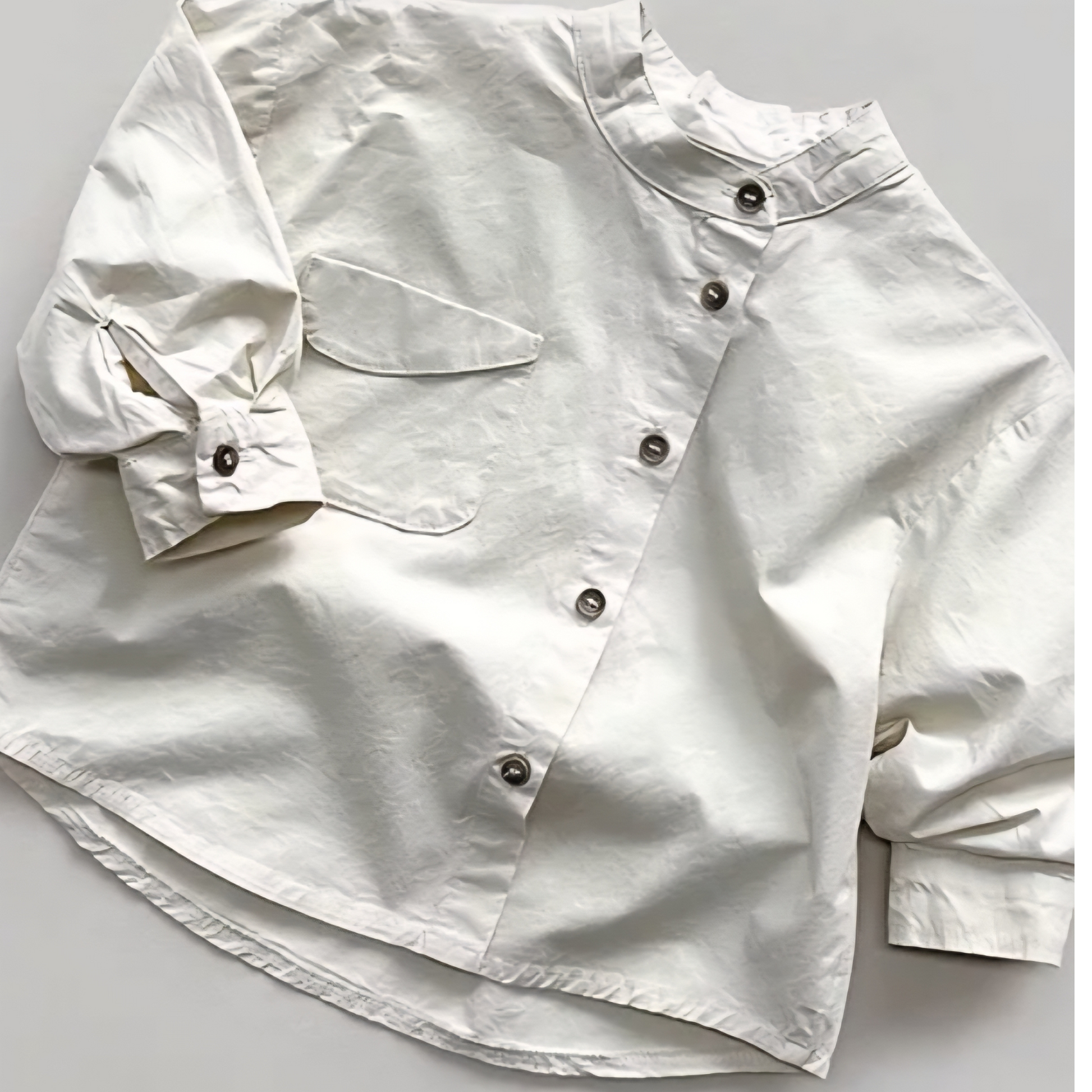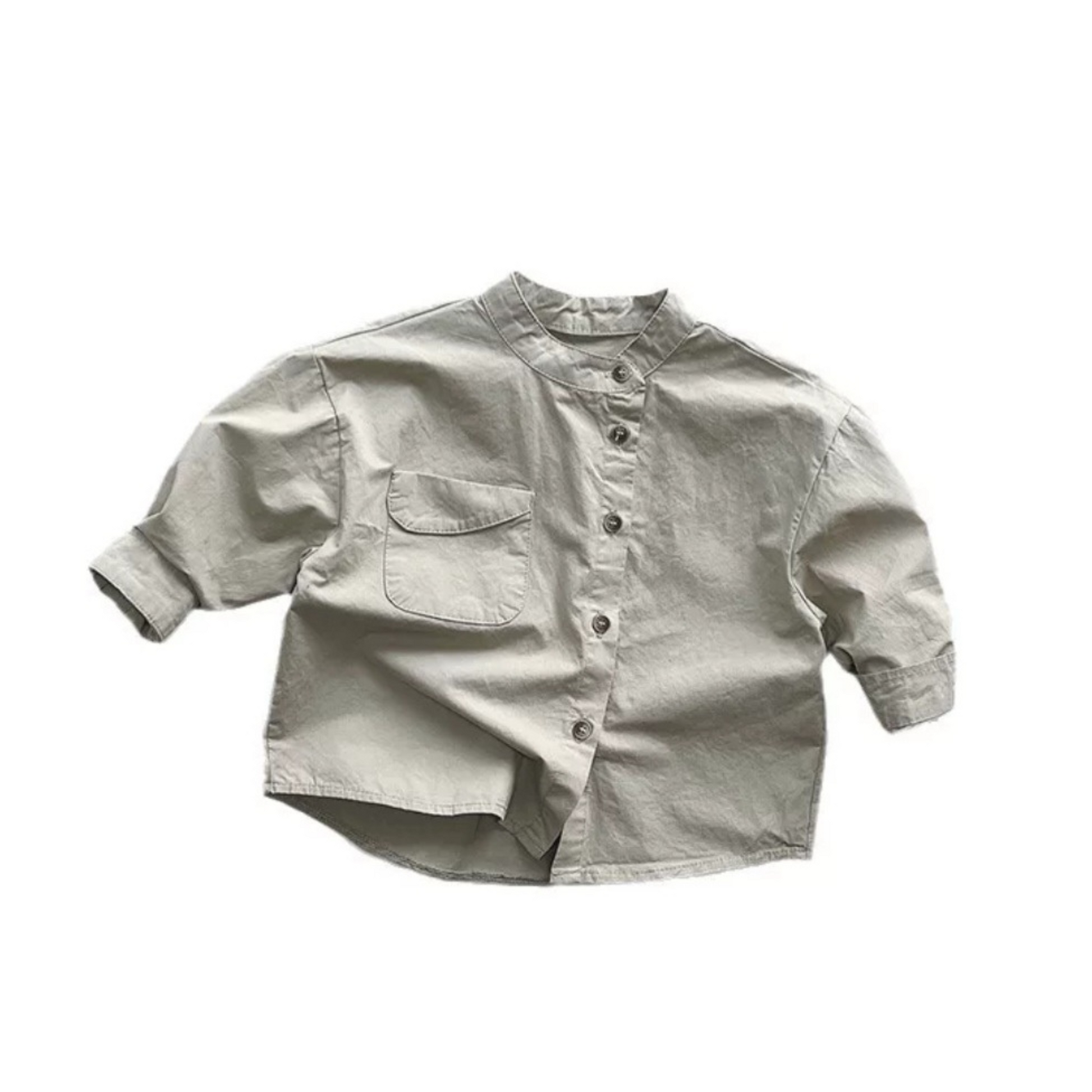 Leichtes Jungenhemd aus 100 % Baumwolle mit modernem Stehkragen. Das schlichte Design in neutralen Farben lässt sich vielseitig kombinieren – ideal für Schule, Freizeit oder festliche Anlässe. Durch den lockeren Schnitt bietet es Bewegungsfreiheit und hohen Tragekomfort. Perfekt geeignet für Frühling bis Herbst.