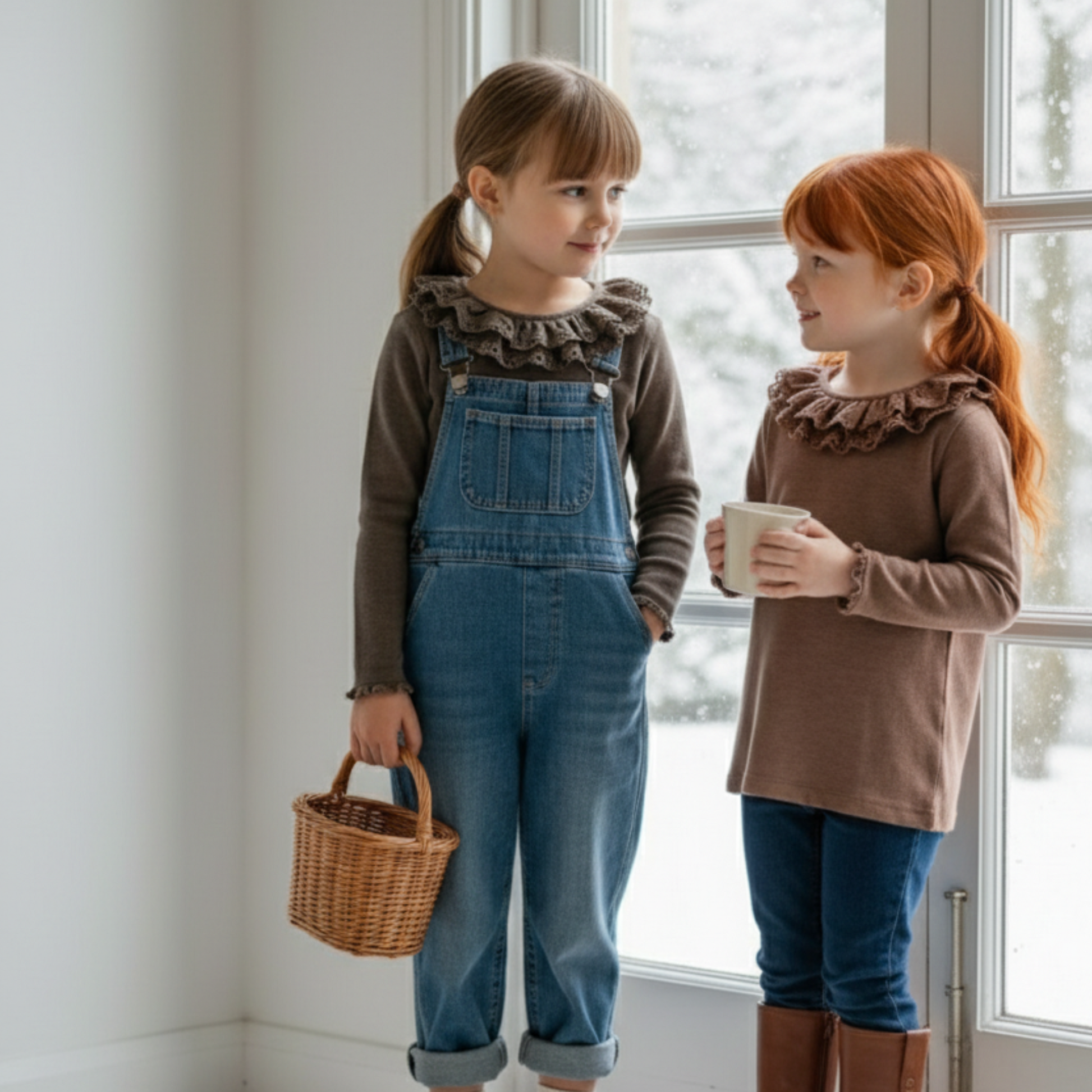 Dieses weiche Baumwollshirt mit dekorativem Spitzenkragen ist ein echter Klassiker für kleine Mädchen. Der hohe Baumwollanteil sorgt für angenehmen Tragekomfort, während der zarte Spitzenbesatz dem schlichten Design einen verspielten Touch verleiht. Ideal für den Alltag, Kindergarten oder Familienausflüge – lässt sich wunderbar mit Röcken, Hosen oder Strickjacken kombinieren.