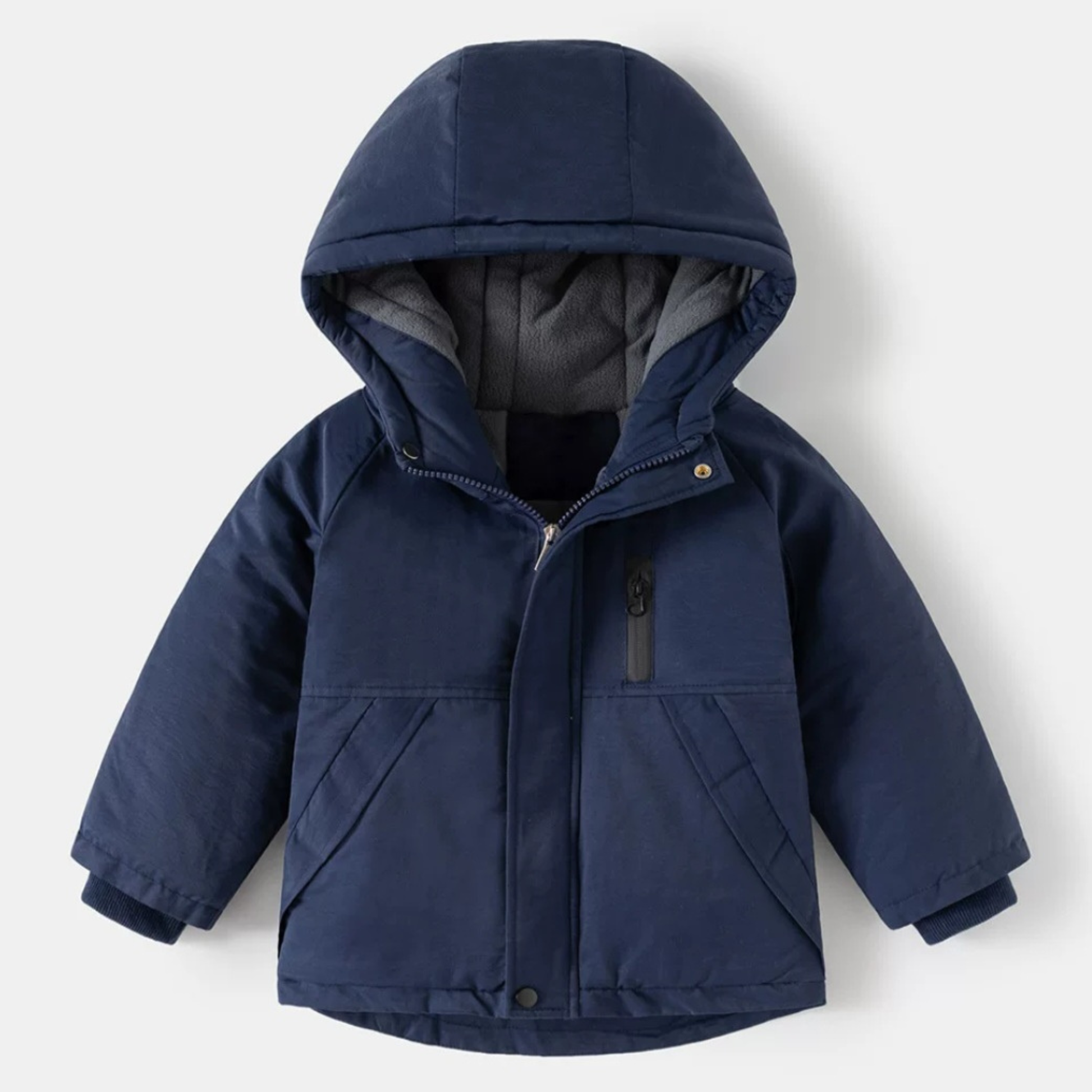 Der hohe Kragen, die gefütterte Kapuze und der sichere Reißverschluss bieten optimalen Schutz vor Wind und Kälte. Durchdachte Details wie die vordere Brusttasche und die aufgesetzten Taschen machen Arvo alltagstauglich – ob für Kindergarten, Schule oder den Winterspaziergang.