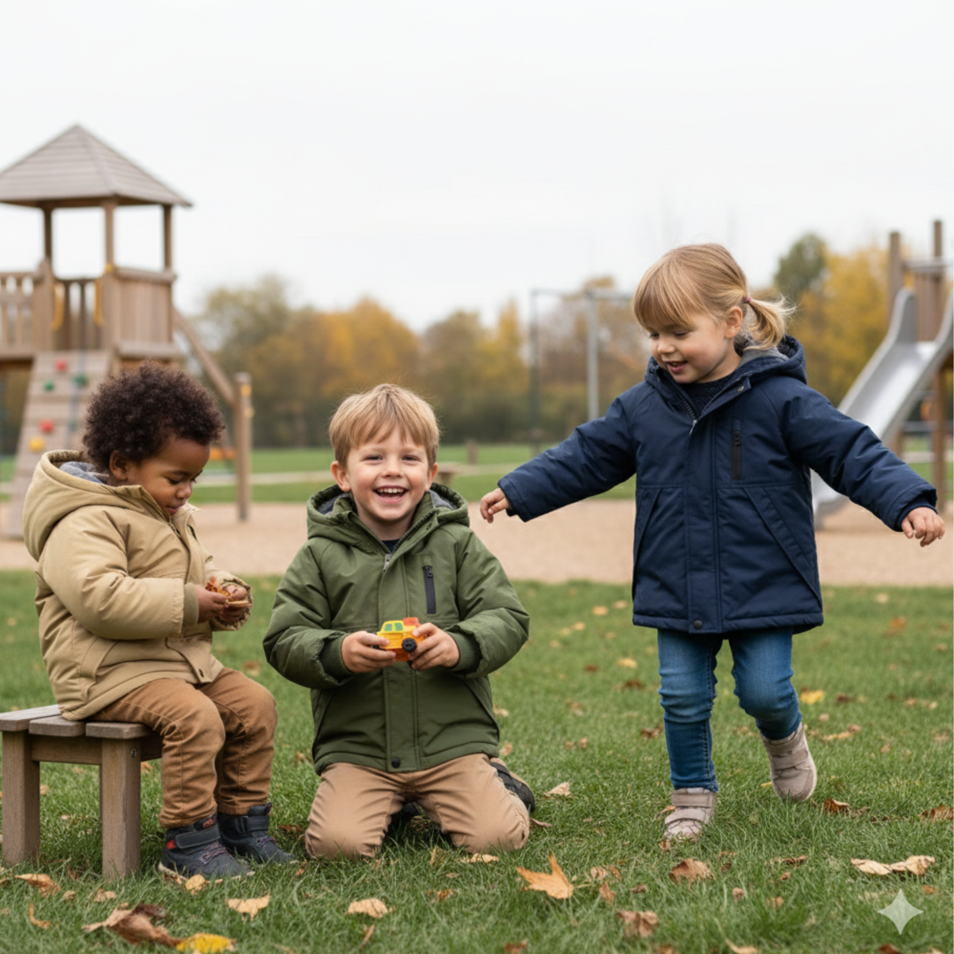 Die Winterjacke Arvo ist gemacht für kalte Tage, an denen Kinder einfach nur warm, geschützt und frei draußen spielen wollen.