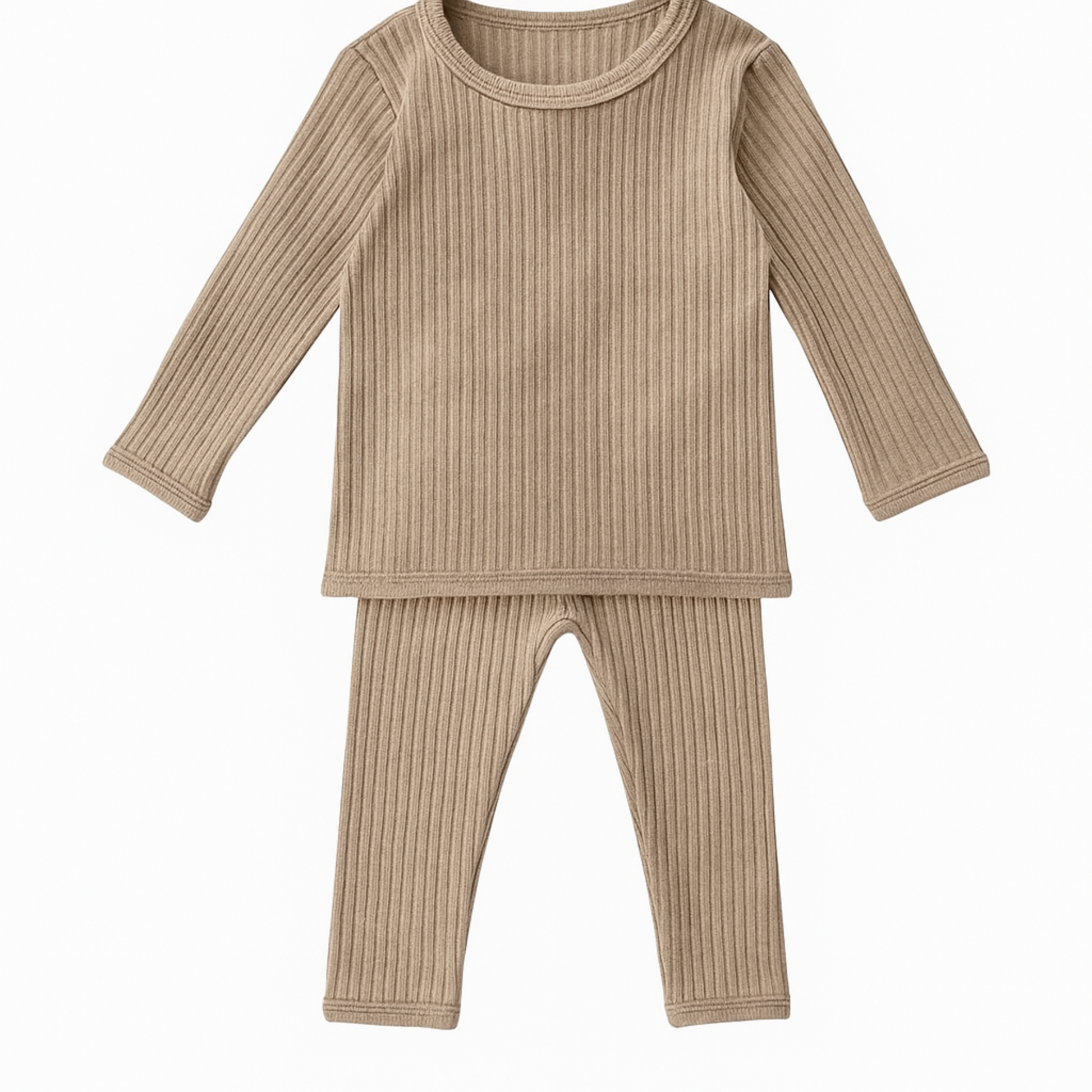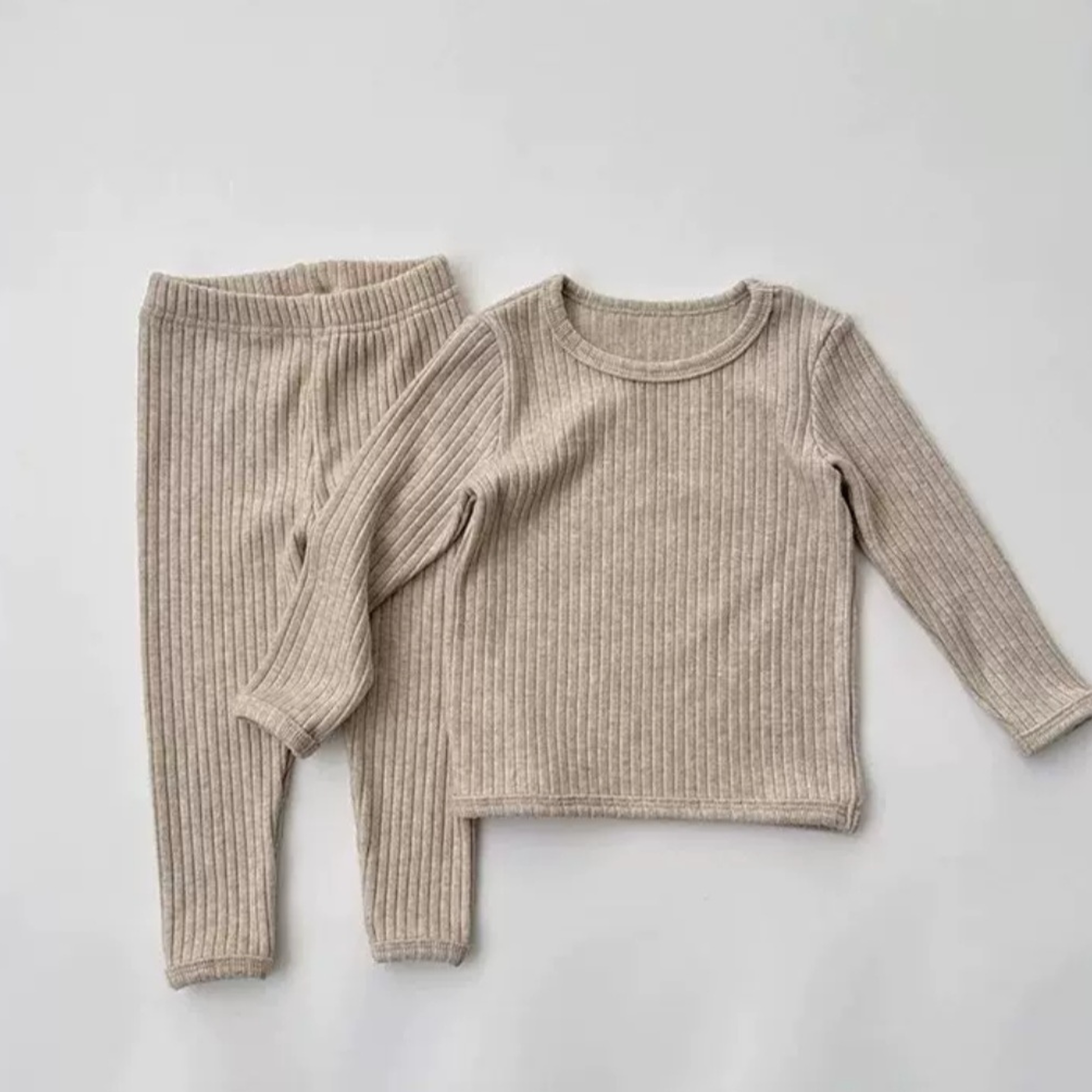 Das Set besteht aus einem Langarmshirt mit Rundhalsausschnitt und einer passenden Hose mit elastischem Bund – perfekt als Schlafanzug, Hausanzug oder bequemes Basic für den Alltag.